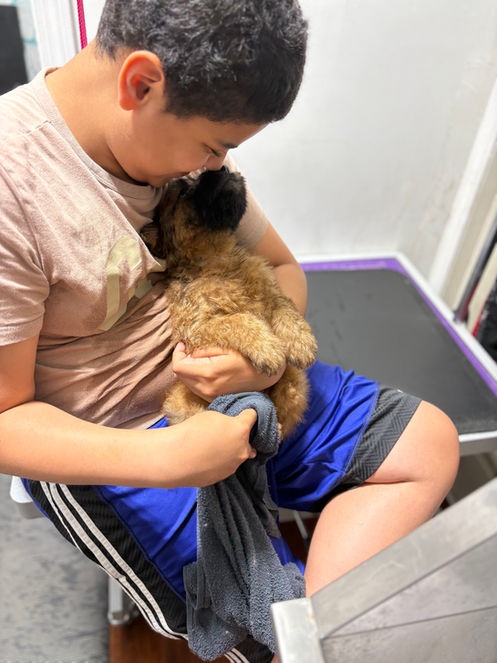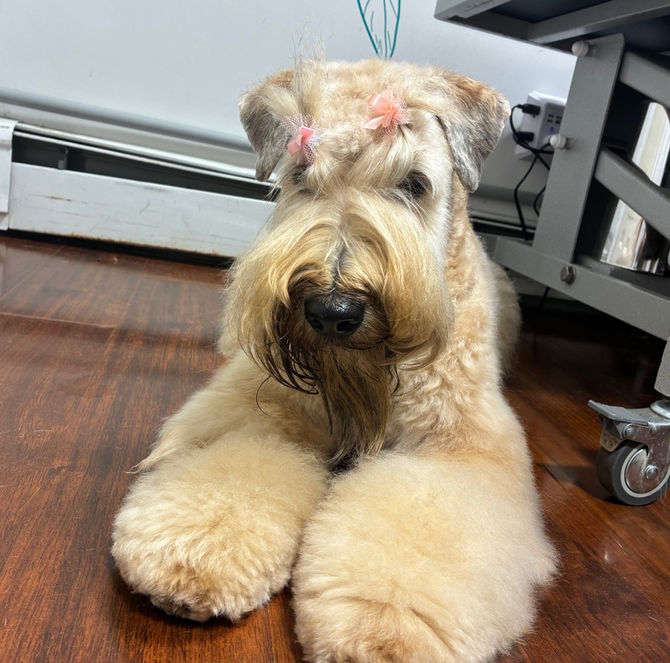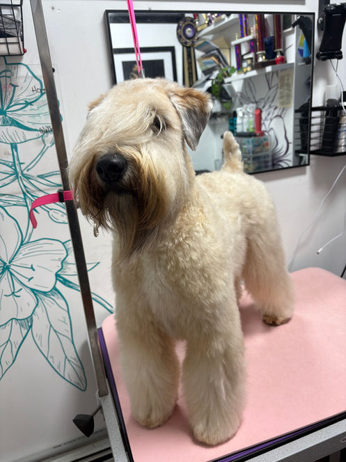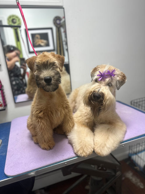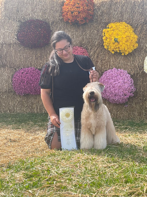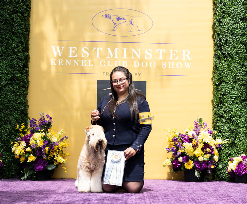 Palacio Wheatens is owned and founded by breeder-handler Katherine Roldan, whose journey with dogs began in 2011. Katherine entered the canine world as a young groomer at PetSmart, where she discovered her passion for coat care, structure, and canine behavior. As she continued her grooming education, she encountered the Soft Coated Wheaten Terrier—an experience that would define her future. Their joyful temperament, expressive faces, and beautiful coats immediately captured her heart.